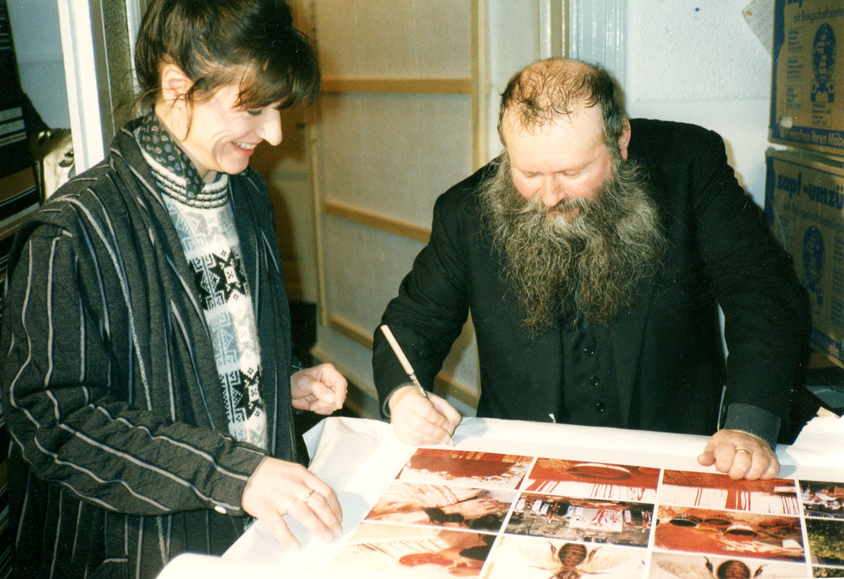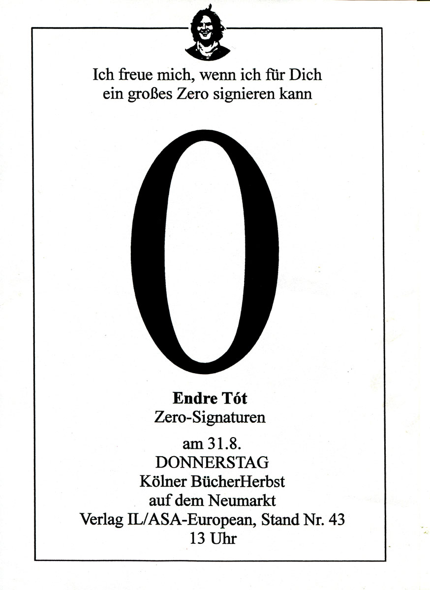 Endre Tót „Zero-Signaturen“ auf dem Stand 43, Kölner Bücherherbst 1995, Neumarkt