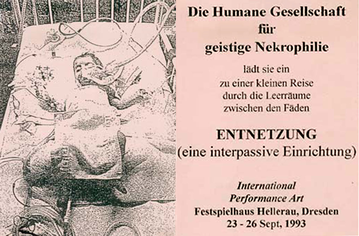Entnetzung – Eine interpassive Einrichtung mit Boris Nieslony und Gruppe 15. November (HGGN), September 1993, International Performance Art – Festspielhaus Hellerau, Dresden