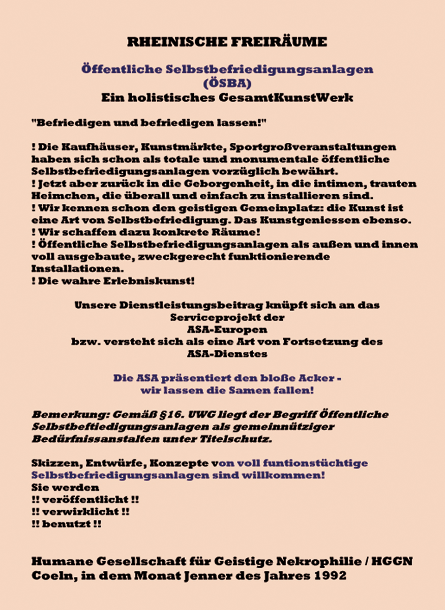 _The art book series The White Book was edition no. 1 of Edition Necrophil, The Virtual Diary was an activity run by Verlag IL and ASA-European at the Moltkerei Werkstatt within the interactive TV project Piazza Virtuale / Quantenpool Köln at documenta 9 (1992).
