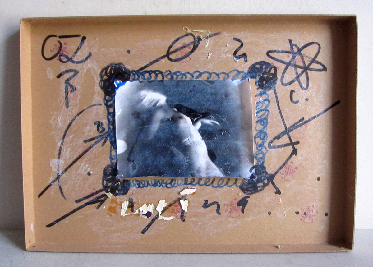 Foto on CV paper, mounted on interior lid of a cardboard box; box: 31x22x2 cm, photo 13×9.5 cm.