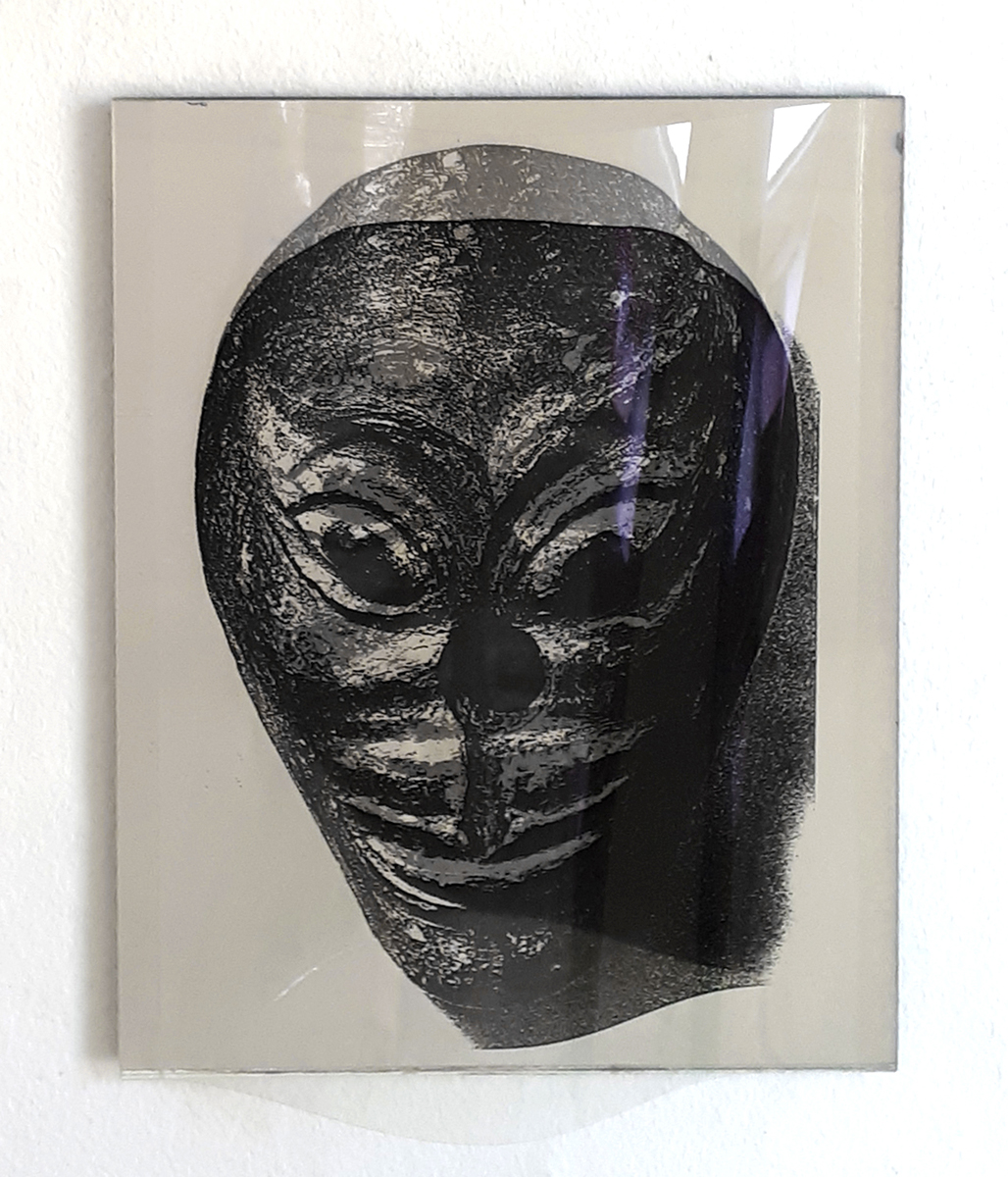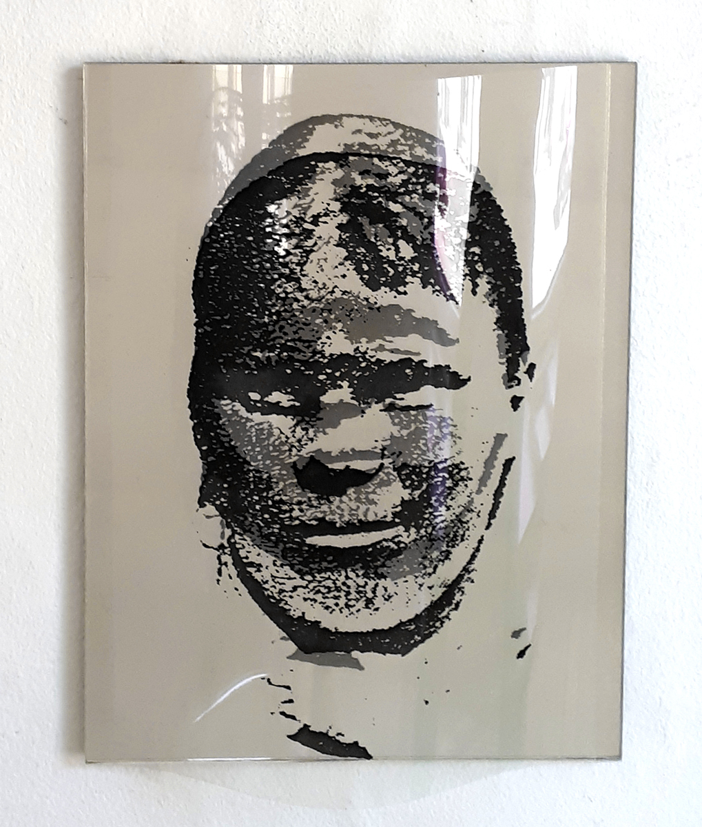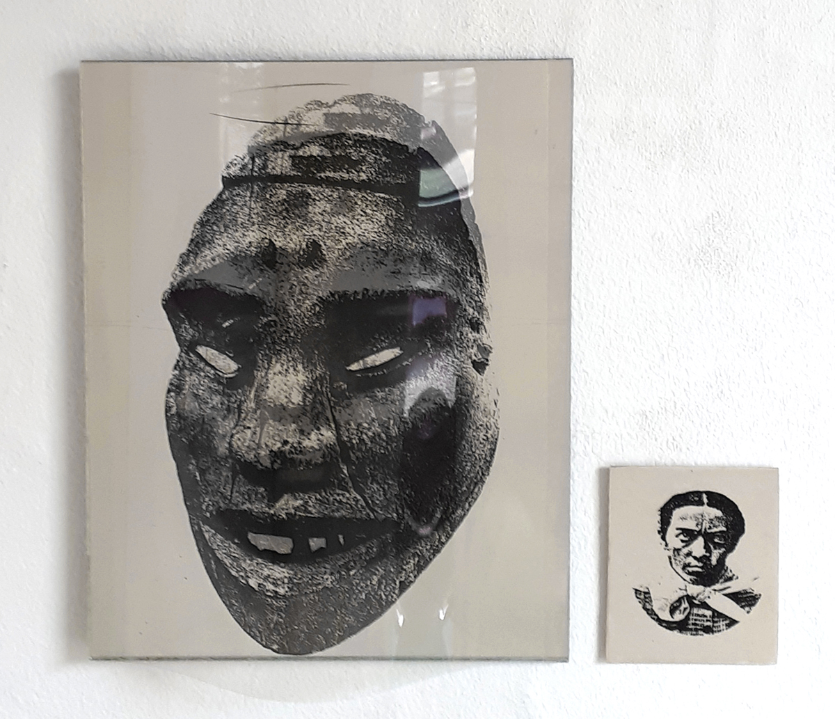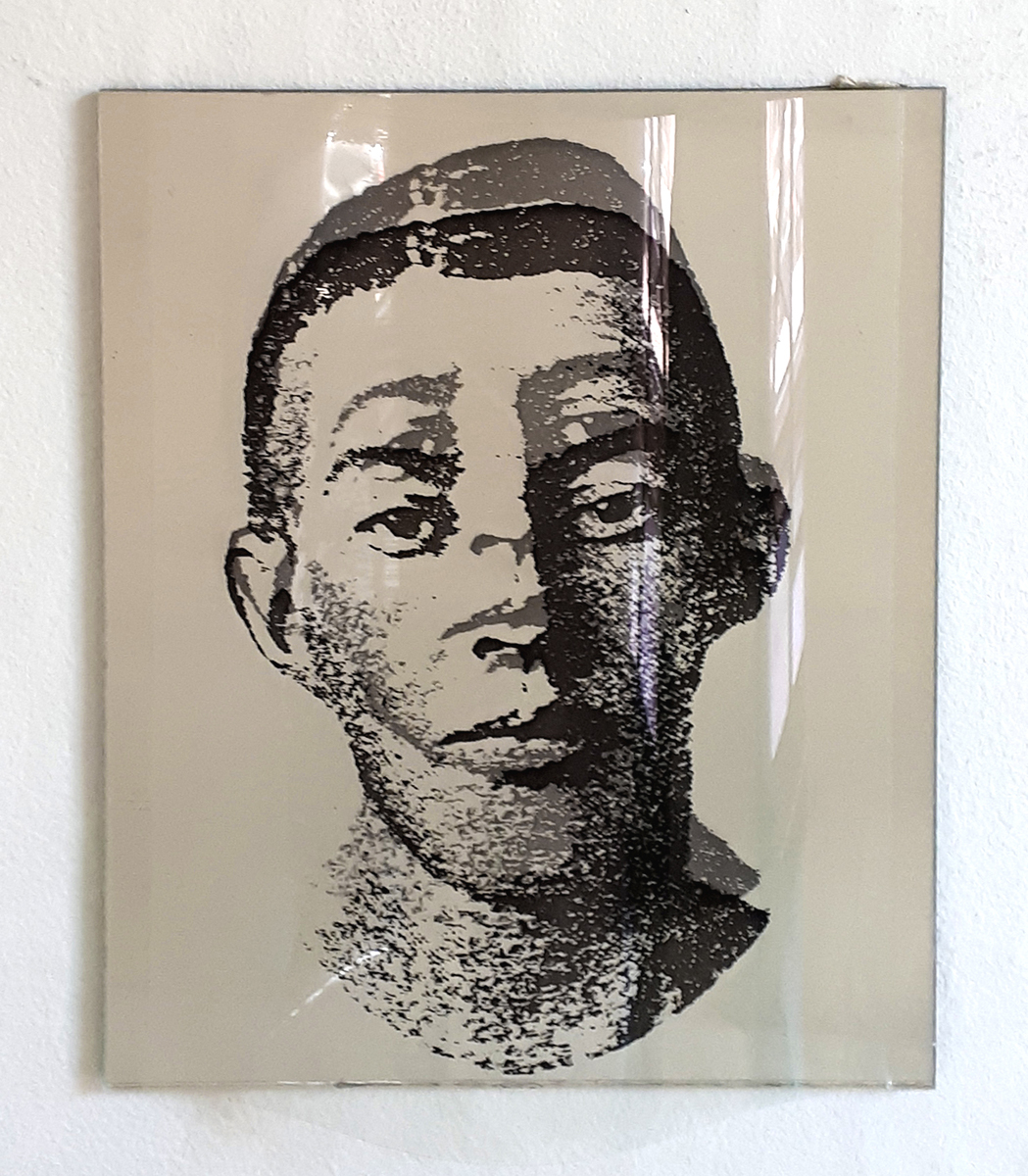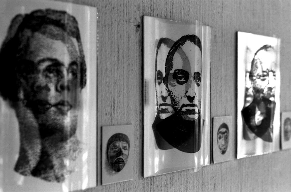 Identifikationssuch/t (unter dem Pseudonym Marie-Louise Panderella, auch mit dem Titel: Korridor-Installation) – 1992 (Bedburg-Hau); Raumgröße ca. 5×2,5 m; 10 auf Spiegel montierte Portraits aus dem Szondi-Test, transparente PE-Folie, je 17×24 cm; ebensolche Portraits auf Karton, je 6x8cm; 10 auf Spiegel montierte Maskenbilder, transparente PE-Folie, je 17×24 cm; ebensolche Maskenbilder auf Karton, je 6x8cm; 4 schwarze Spiegel, je 17×24 cm; 24 Spiegel, je17x24 cm; 24 leere Kartons, je 6×8 cm; Arrangement: die 10 Portraits und Masken wurden sich jeweils auf den langen Wänden des Raumes genau gegenübergestellt. Neben den jeweils großen Portrait- bzw. Maskenbildern (17×24 cm) findet sich das jeweils exakt gegenüberliende Bild auf Karton (6×8 cm). Im exakten Lot mit den großen, bzw. kleinen Wandbildern liegen „leere“ Spiegel, bzw. die leeren Kartons auf dem Boden des Raumes. Vier schwarze Spiegel setzen die Reihe der Maskenbilder auf Länge der gesamten Wand fort. Identification Addiction (under pseudonym Marie-Louise Panderella, alternative title: Korridor-Installation ) – 1992 (Bedburg-Hau); Room size approx. 5×2.5 m. 10 portraits from the Szondi test, mounted on mirror, transparent PE foil, 17×24 cm each; same portraits on cardboard, 6x8cm each; 10 mask images mounted on mirror, transparent PE foil, 17×24 cm each; same portraits on cardboard, 6x8cm each; 4 black mirrors, 17×24 cm each; 24 mirrors, 17×24 cm each; 24 empty boxes, 6×8 cm each. Arrangement: the 10 portraits and masks were placed directly opposite each other on the long walls of the room. Right next to each respective large portrait/mask image (17×24 cm), the cardboard image (6×8 cm) of the portrait or mask image directly opposed is placed. In the direct lines between the large and small pictures, the “empty” mirrors / empty boxes are placed on the room floor. Four black mirrors continue the row of mask images on the length of the total wall.