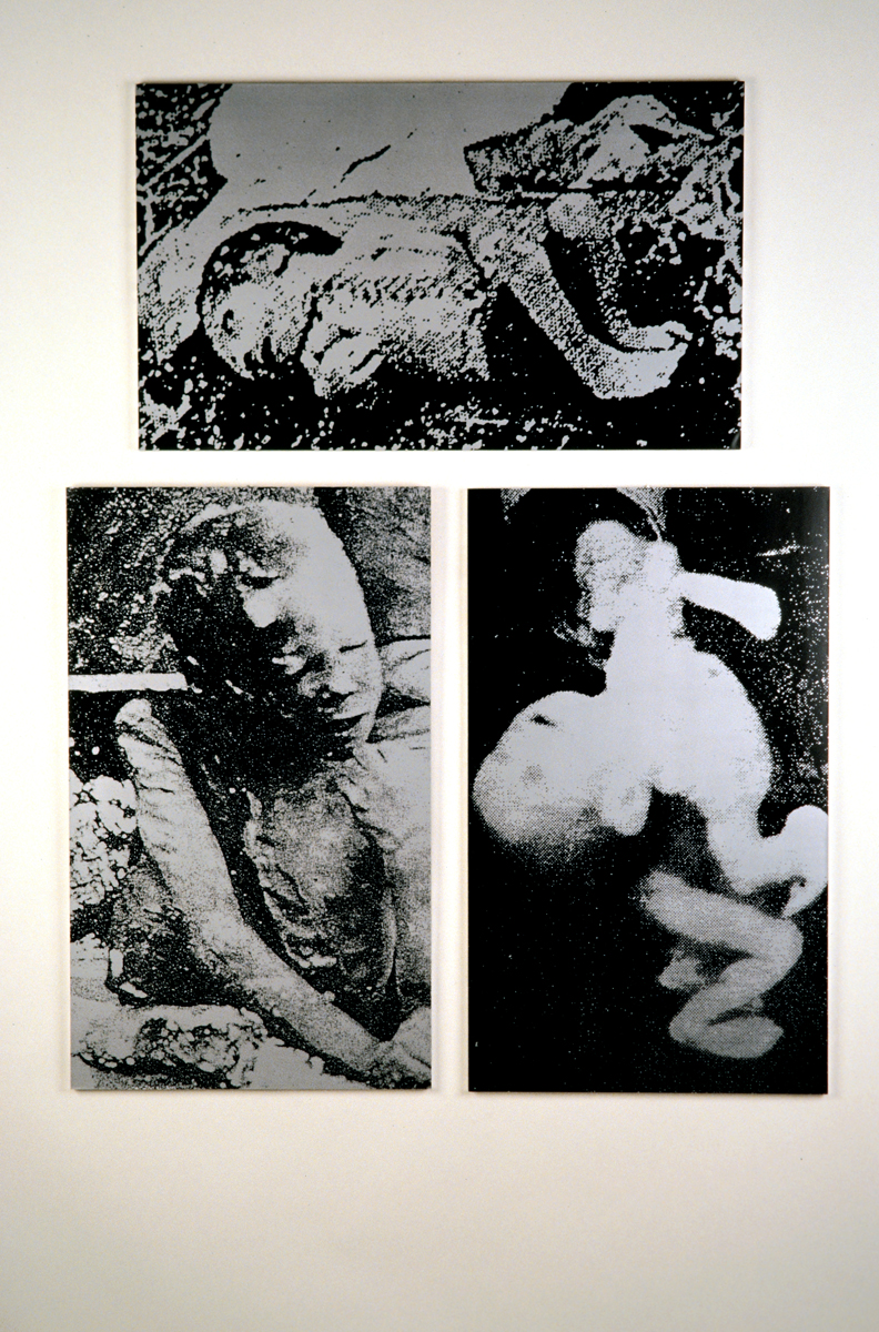 Boys – 3 Silberblau getönte s/w Vintage auf Barytpapier, auf Holzplatten aufgezogen, je 50×83 cm. Laborarbeit: Britta Neumann // 3 silver-blue tinted b/w vintage prints on barite paper, mounted on wooden panels, 50×83 cm each. Lab work: Britta Neumann.