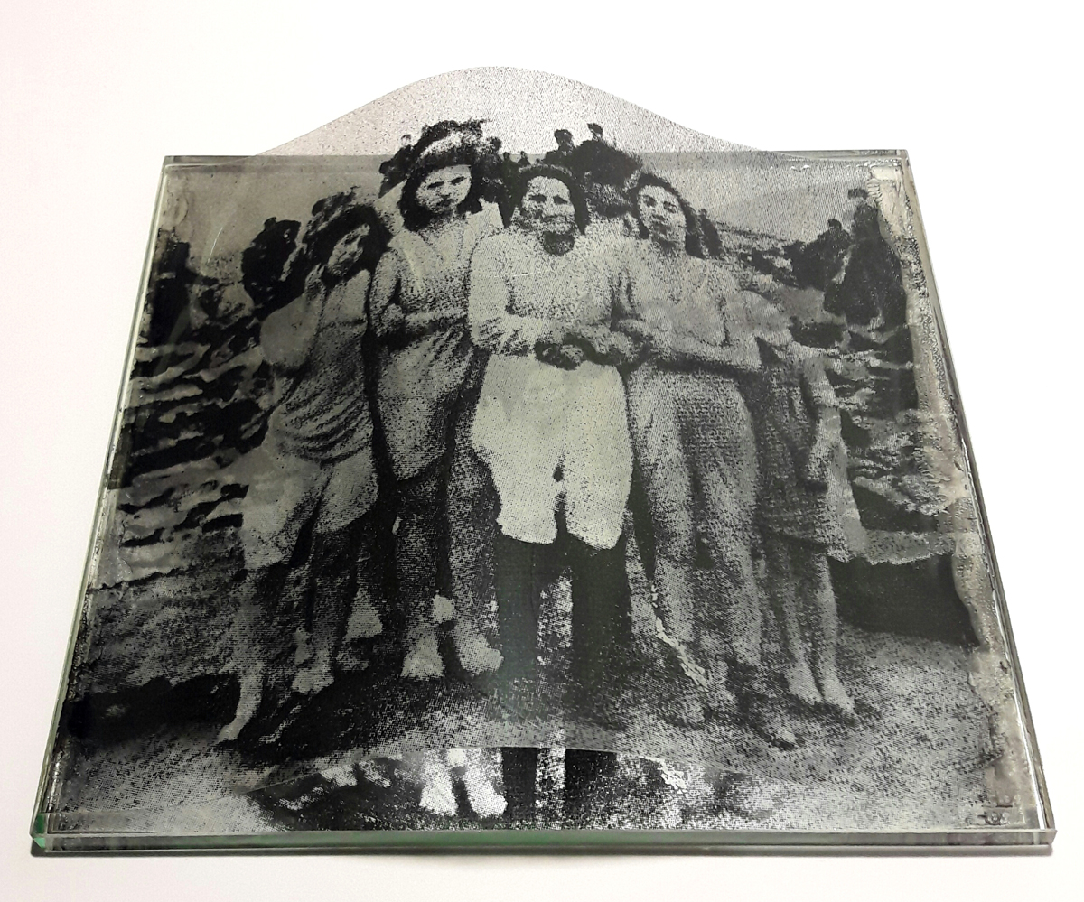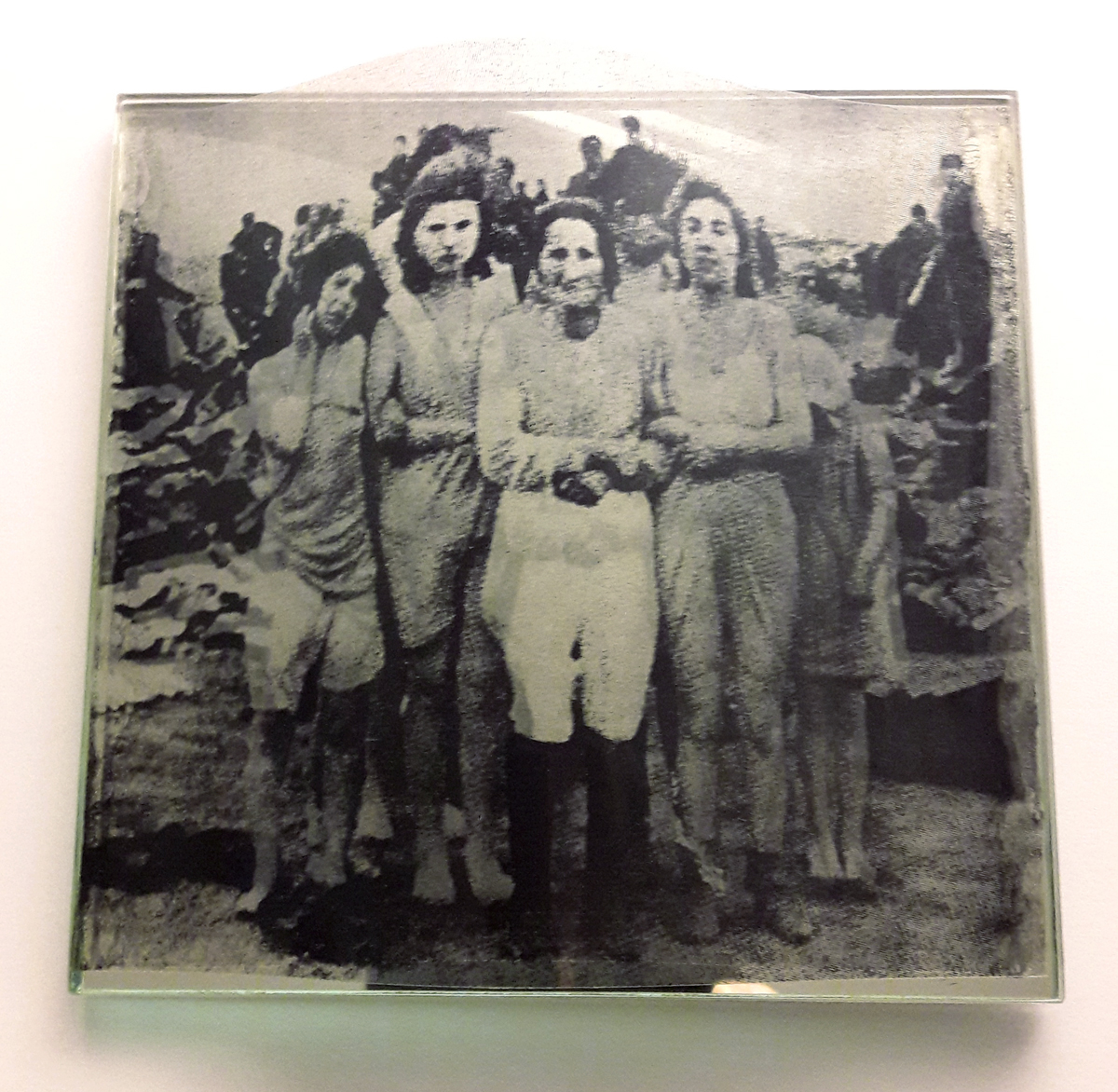 Girls vor der Erschiessung / Girls before the shooting – 1989; Spiegel mit montierter, bedruckter Folie, 18×18 cm; mirror with mounted, printed foil, 18×18 cm